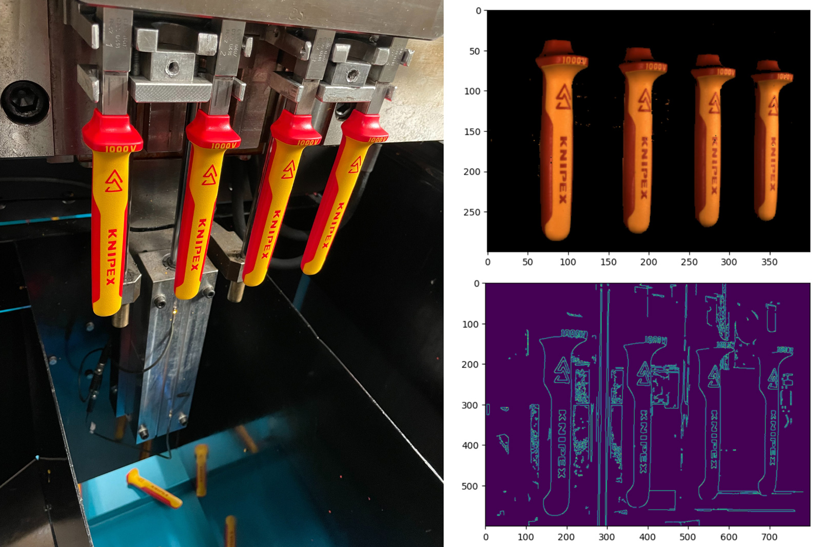 Aktuell wird jede einzelne Zangengriffhülle der KNIPEX VDE-Serie vor dem Versand von Orbis Will-Mitarbeitern mit einem Vergrößerungsglas kontrolliert. Diese anstrengende und monotone Qualitätssicherung soll künftig von einer KI-Software übernommen werden. Dadurch werden die Mitarbeiter entlastet und können sich neuen Aufgabenbereichen widmen.